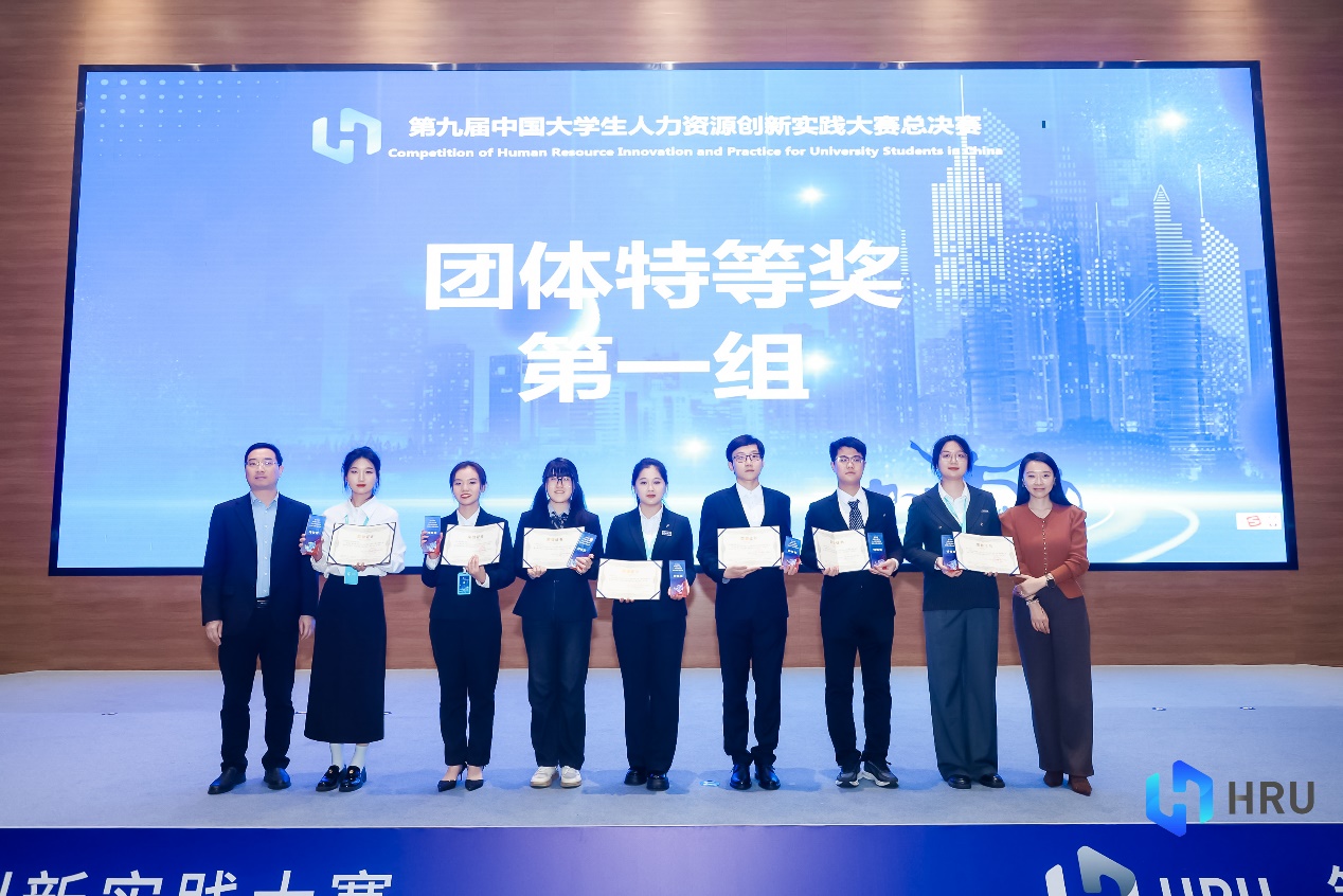 On 22-24 November 2024, the 9th China University Student HR Innovation and Practice Competition (HRU) Grand Final was held in Xiong'an New District, Hebei Province. The team of undergraduates majoring in human resource management won the group grand prize, four individual grand prizes and two individual first prizes.